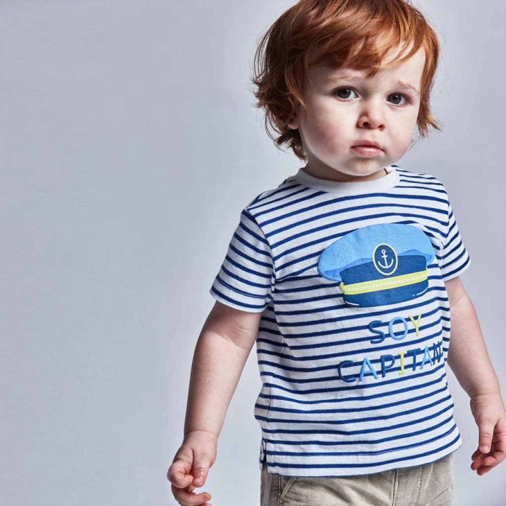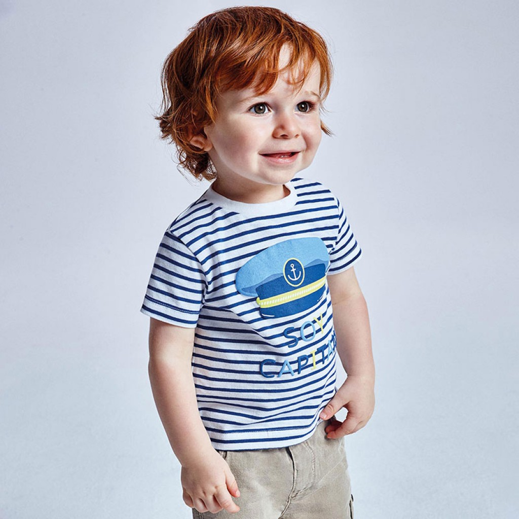 Short sleeved striped t-shirt for baby boy