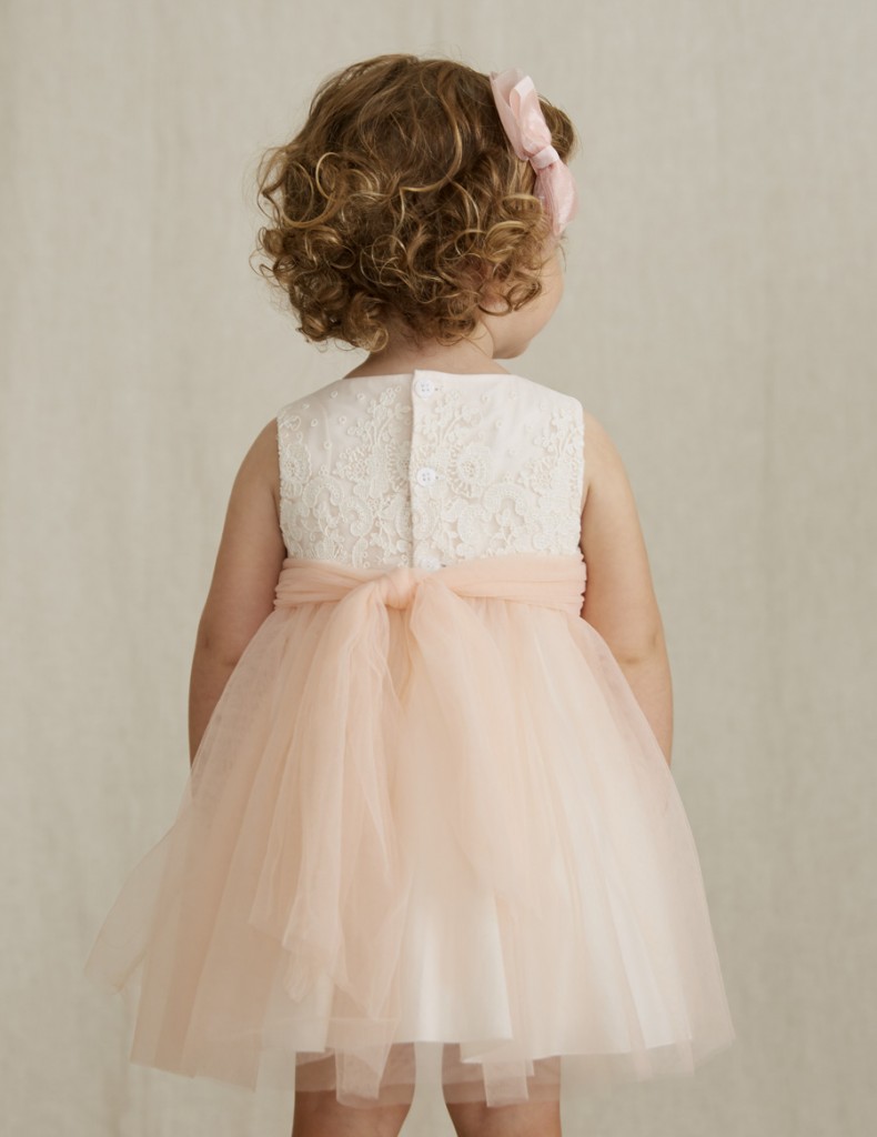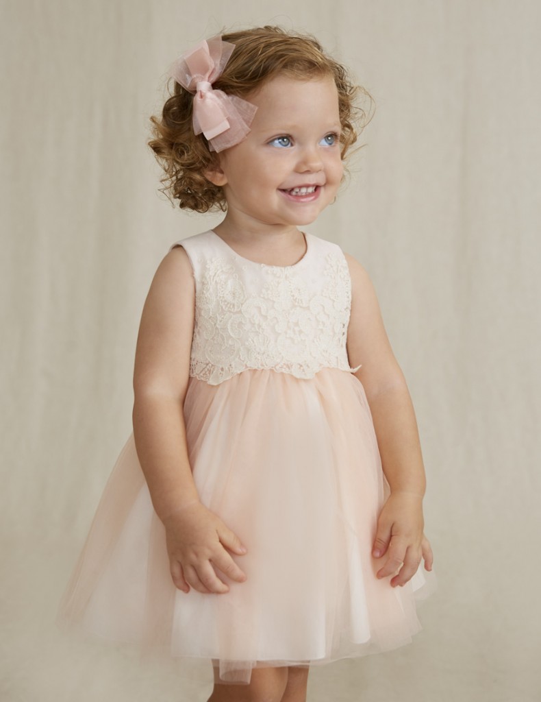 COMBINED EMBROIDERED TULLE DRESS FOR BABY JL2022 Vonkajšia časť: 92% Polyamid 8% Bavlna podšívka : 100% Bavlna Spodky : 100% Polyamid / podšívka 100%bavlna