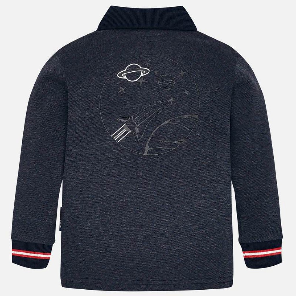 Polokošeľa s dlhým rukávom pre chlapcov. Klasický golier na krku. Vyrobené z mäkkej elastickej bavlny. Bočné otvory na spodnej časti predmetu, vďaka ktorým sa výrobok pohodlnejšie nosí. Funkčné predné vrecko. Dekoratívne prvky: dizajn na prednej a zadnej časti položky.