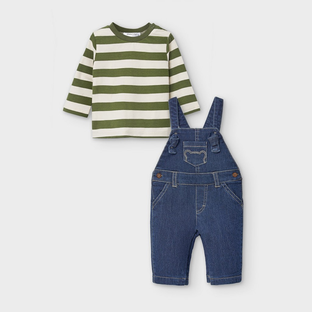 Kombinované tričká a nohavice určené pre chlapcov. Tričko s dlhým rukávom. Okrúhly výstrih s kontrastnými detailmi. Zapínanie na golieri pre ľahké nasadenie. Dekoratívne prvky: ozdobná nášivka, dizajn na prednej strane.