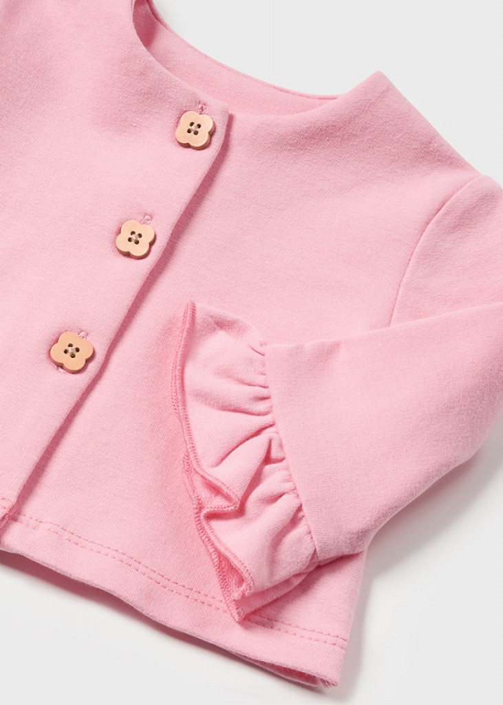 Kabátik pre dievčatá s volánom na rukáve. Okrúhly výstrih.
