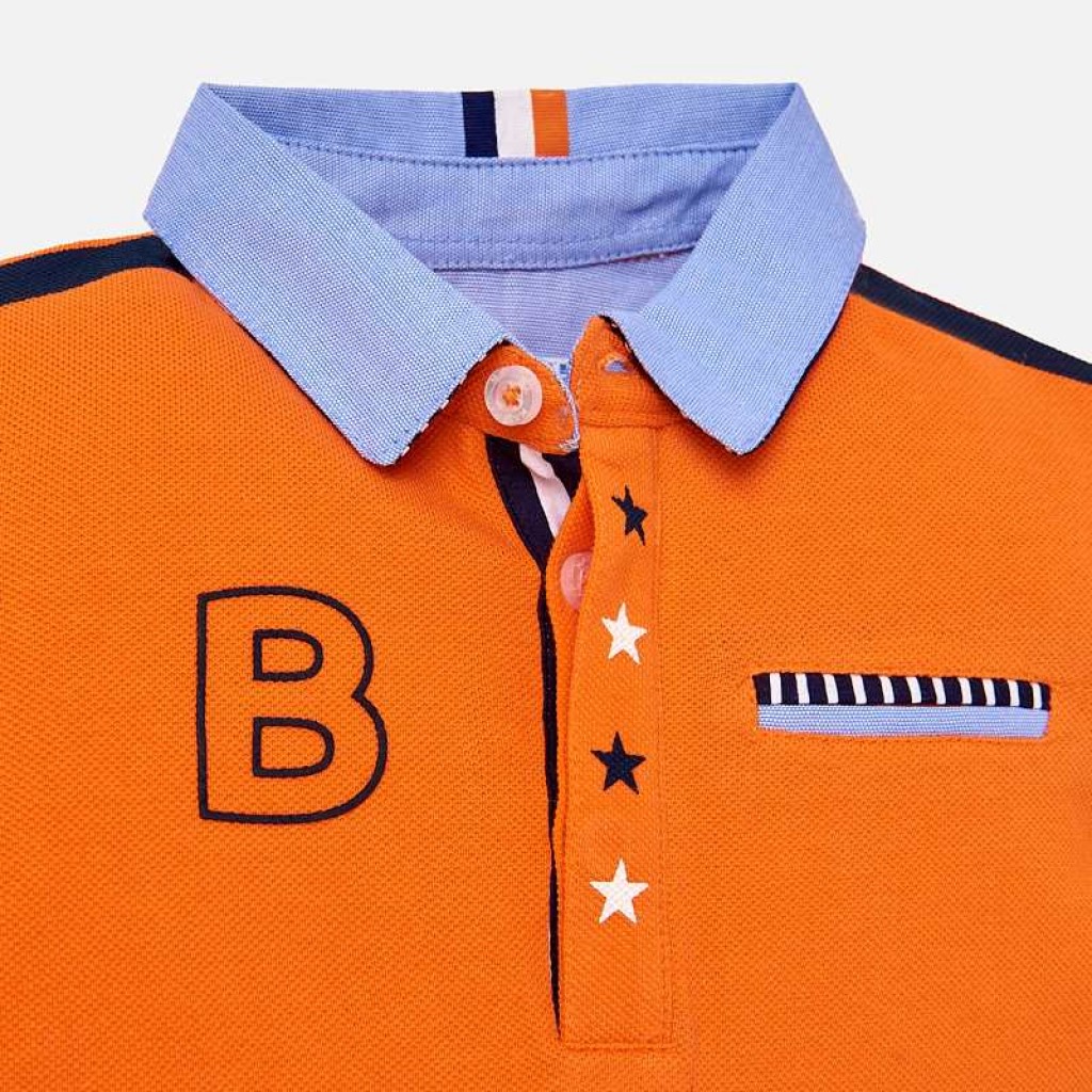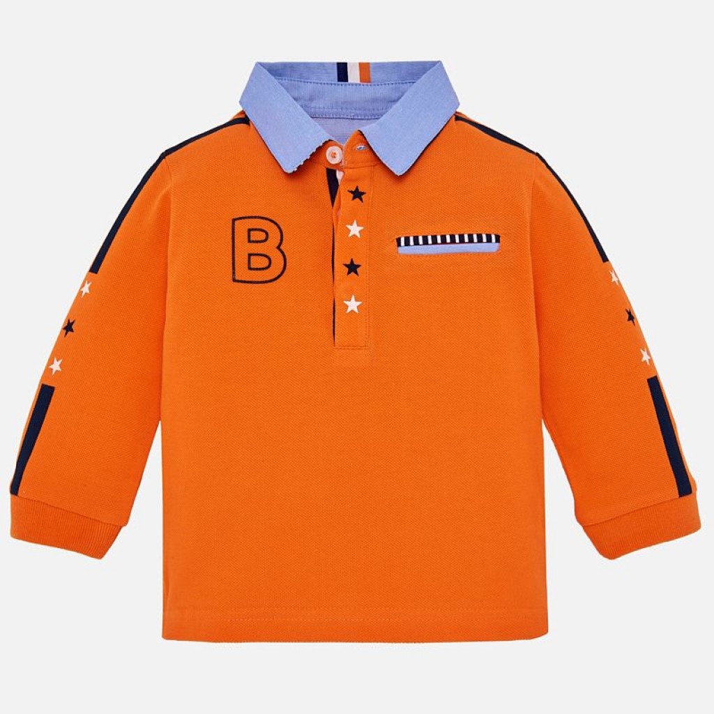Polokošeľa s dlhým rukávom a elastickými manžetami pre chlapcov. Polokošelový golier s kontrastným farebným detailom. Gombík je pripevnený pod golierom pre jednoduché oblečenie.Vyrobené zo 100% bavlnenej tkaniny.