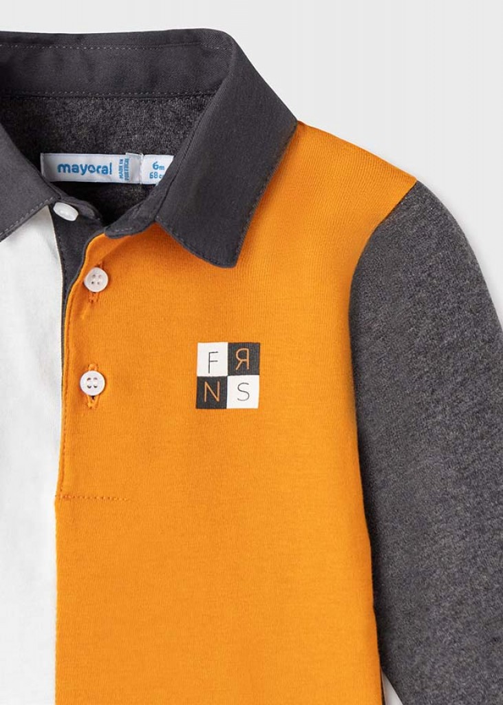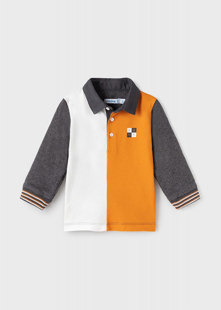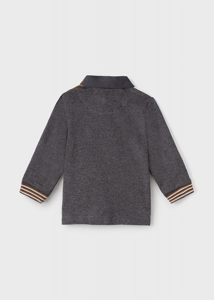 Polokošeľa s dlhým rukávom a elastickými manžetami v kontrastnej farbe pre chlapčeka od 6 do 36 mesiacov. Košeľový golier. Zapínanie na golier na gombíky pre ľahké nasadenie. Vyrobené zo 100% bavlnenej látky.