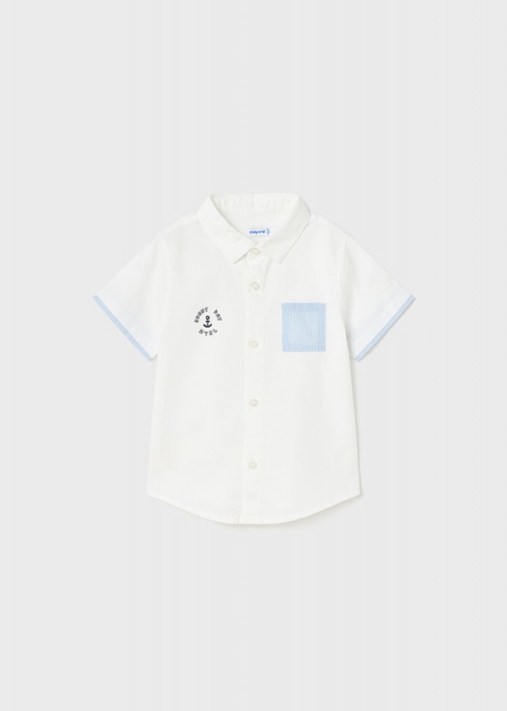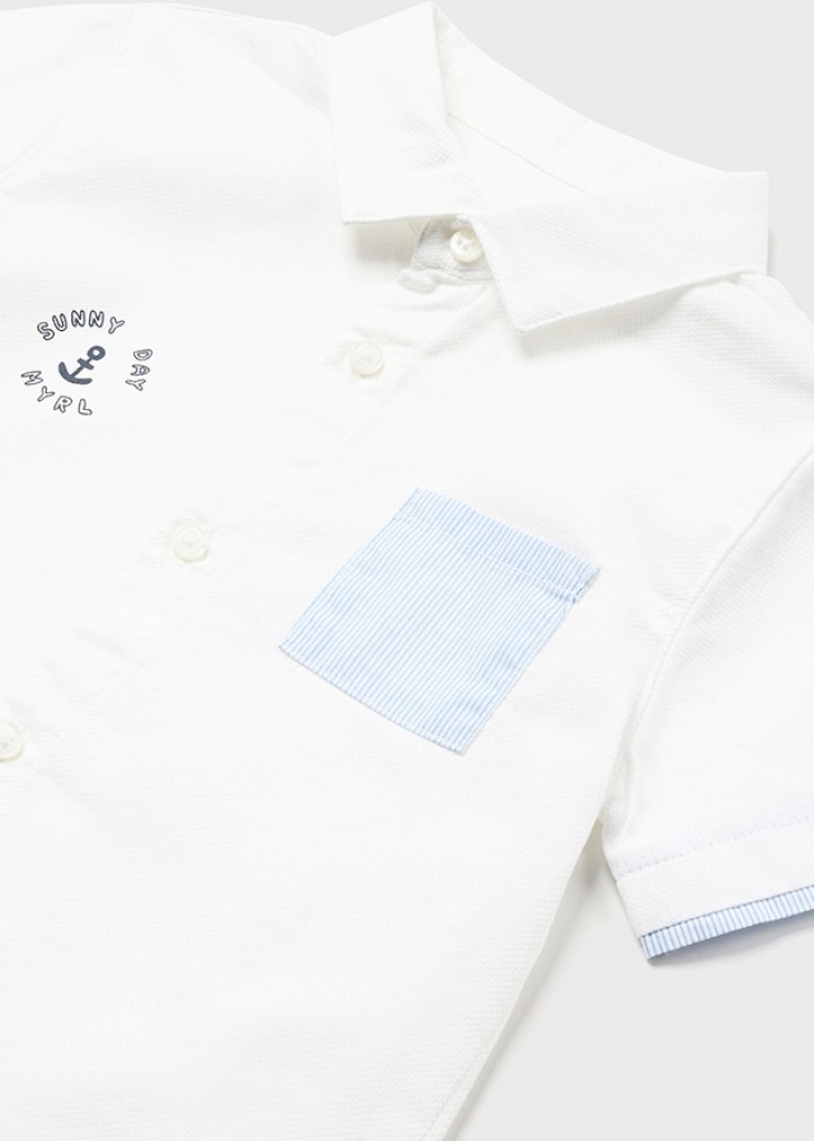 Chlapčenská polokošeľa s krátkymi rukávmi. Košeľový golier. Vyrobené zo 100 % bavlny. Funkčné predné vrecko.