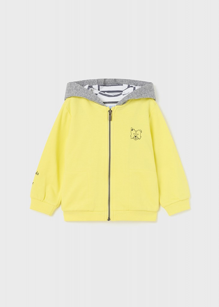 Chlapčenská mikina s dlhým rukávom a kapucňou na zips. Dizajn s kapucňou. Bočné vrecká. Vzorovaný dizajn.