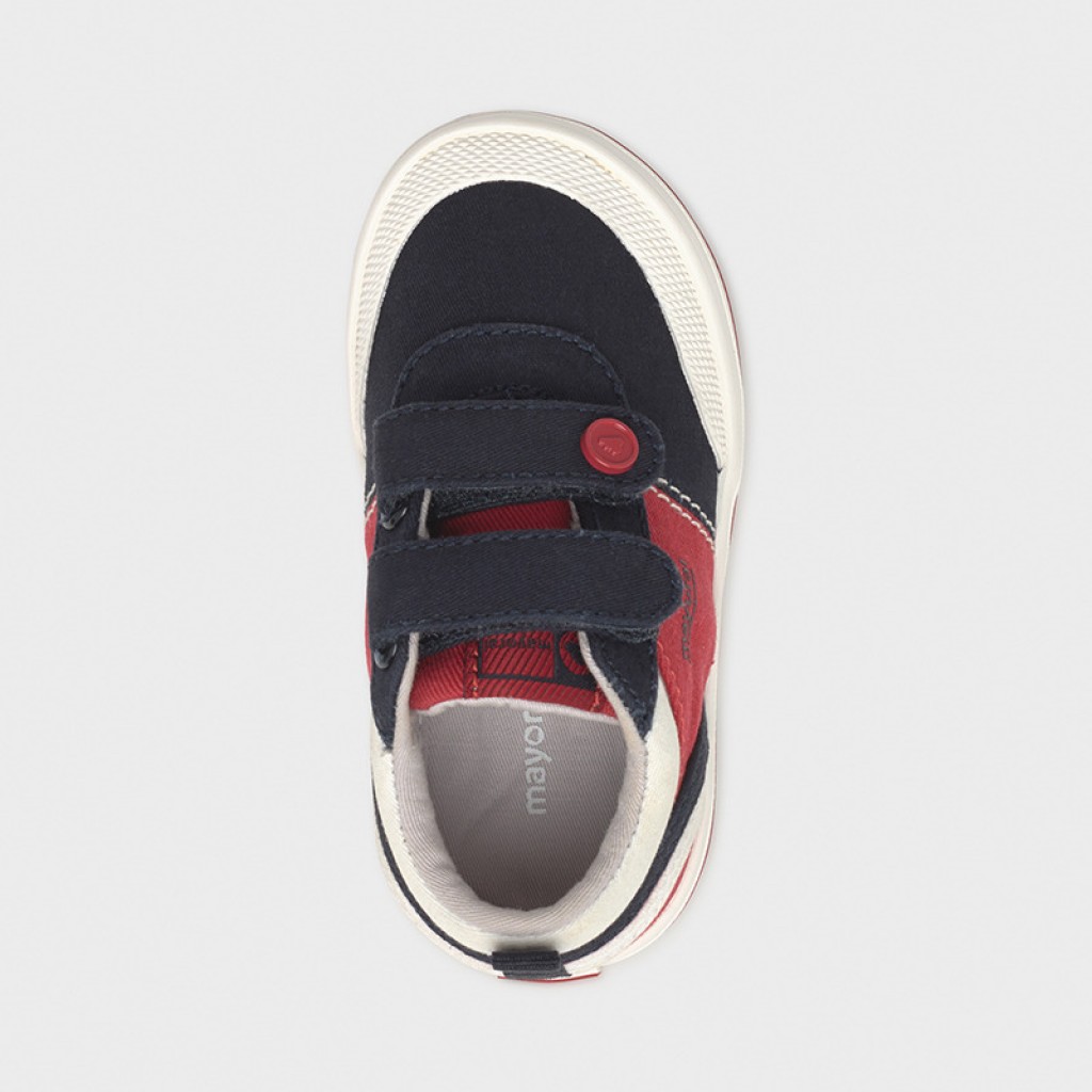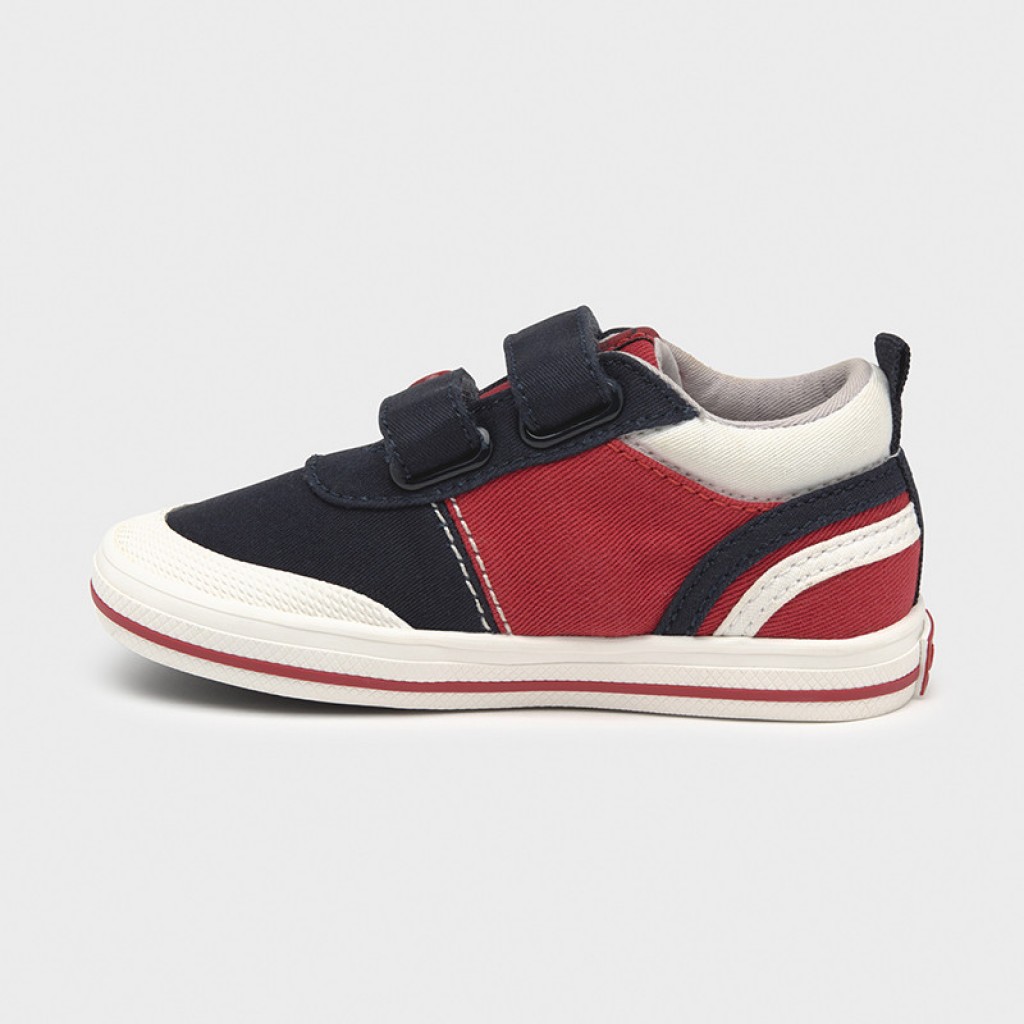 Obuv ECOFRIENDS, obsahuje recyklovanú bavlnu .Neformálne všestranné tenisky pre chlapca, ktoré sa dajú nosiť k rôznym oblečeniam. Topánky s vnútornou podšívkou a priedušnou bavlnenou stielkou. Vonkajší textilný materiál. Nastaviteľné dvojité zapínanie na suchý zips pre rýchle uchytenie a ľahké nastavenie. Vystužená gumová špička pre väčšiu odolnosť .
