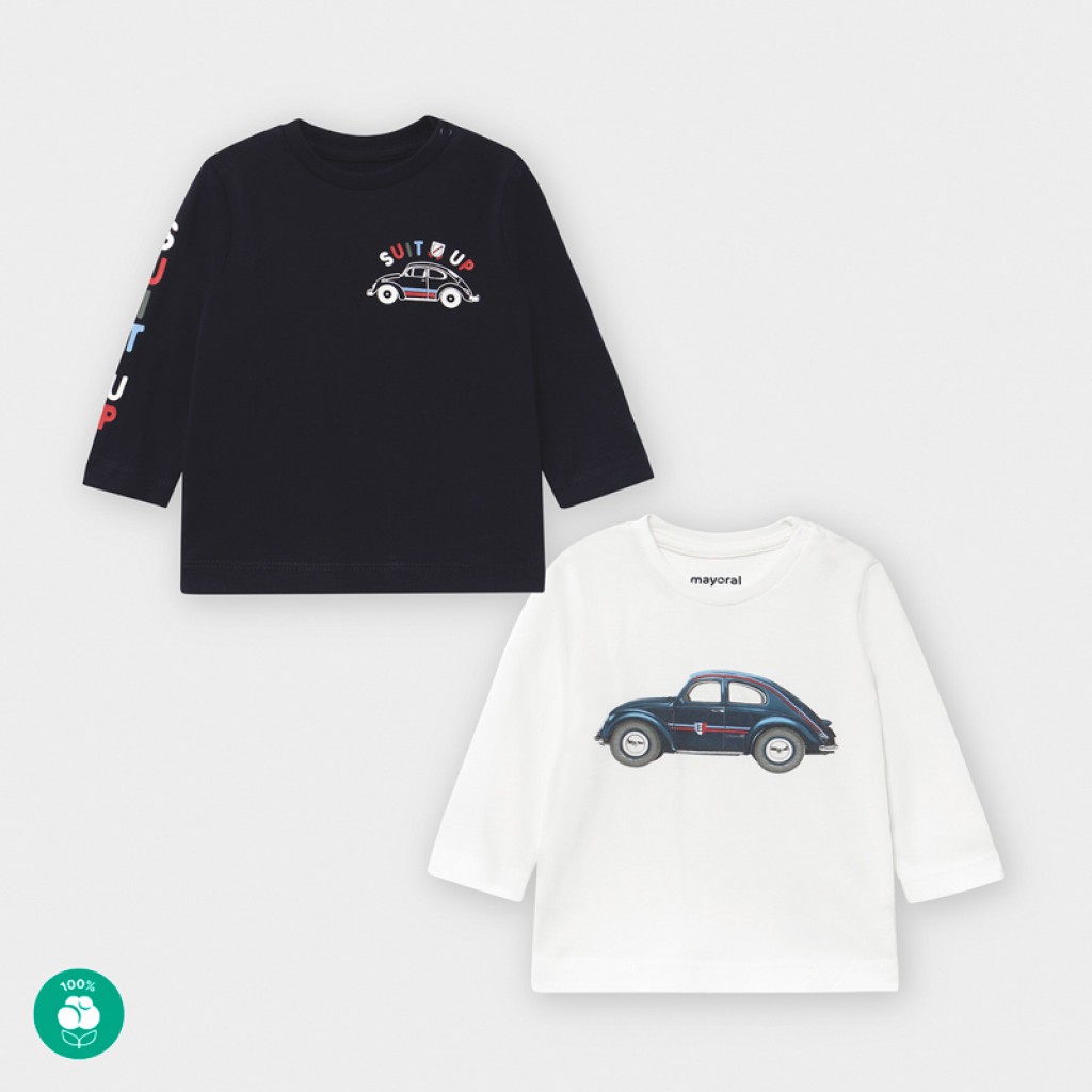 Set of two long sleeved car t-shirts for baby boy