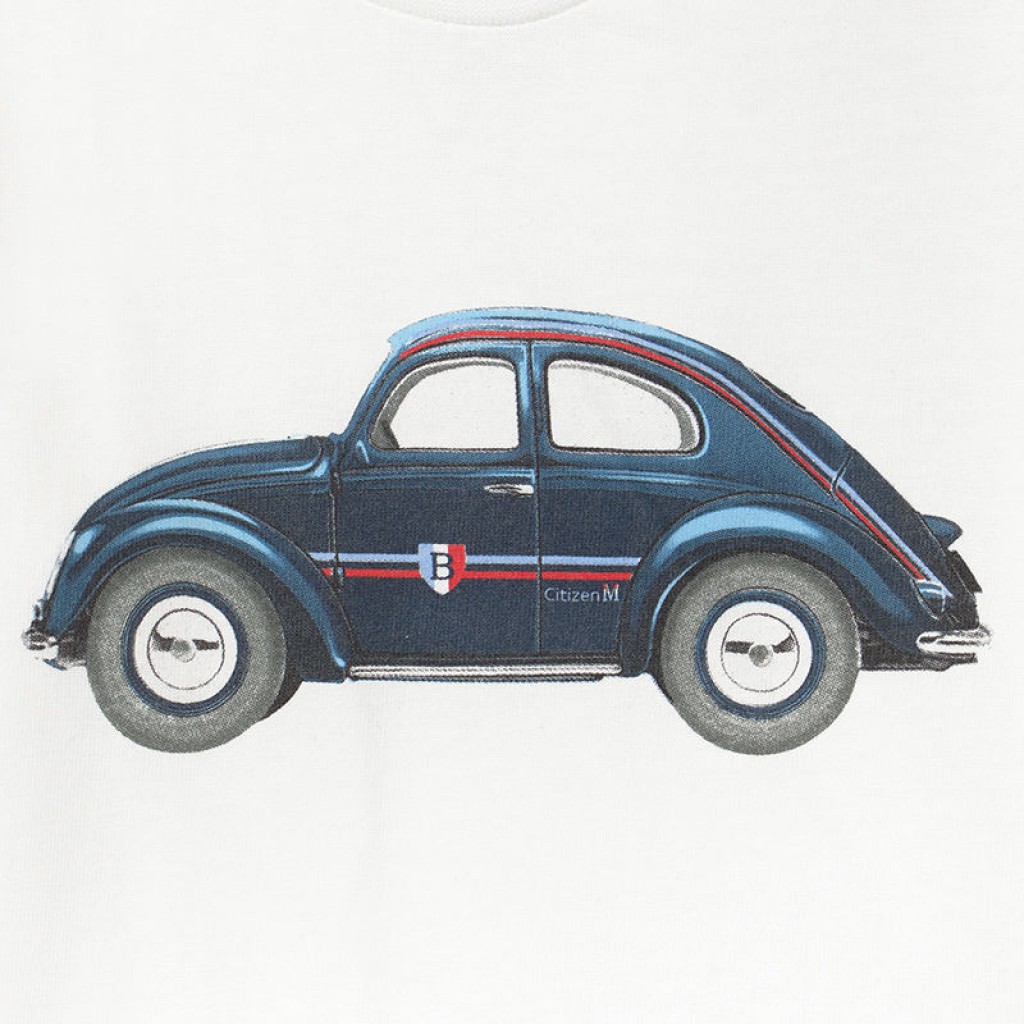 Okrúhly výstrih. Patenty na ramene umožňujú jednoduché oblečenie tričiek. Dekoratívne prvky: potlač vpredu.
