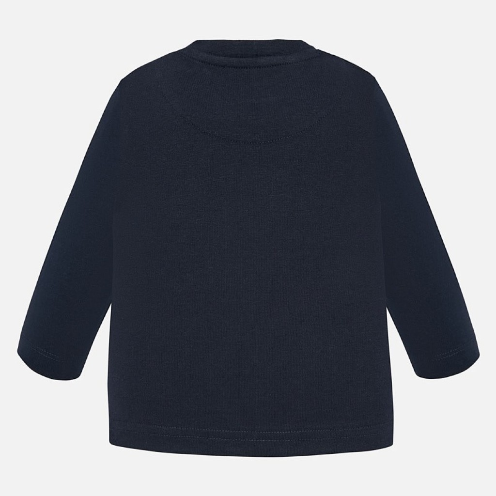 Tričko s dlhým rukávom pre chlapca. Okrúhly výstrih. Zapínanie gombíky na ramene umožňuje ľahké nasadenie odevu. Vyrobené zo 100% bavlny. Dekoratívne prvky: dizajn na prednej strane.