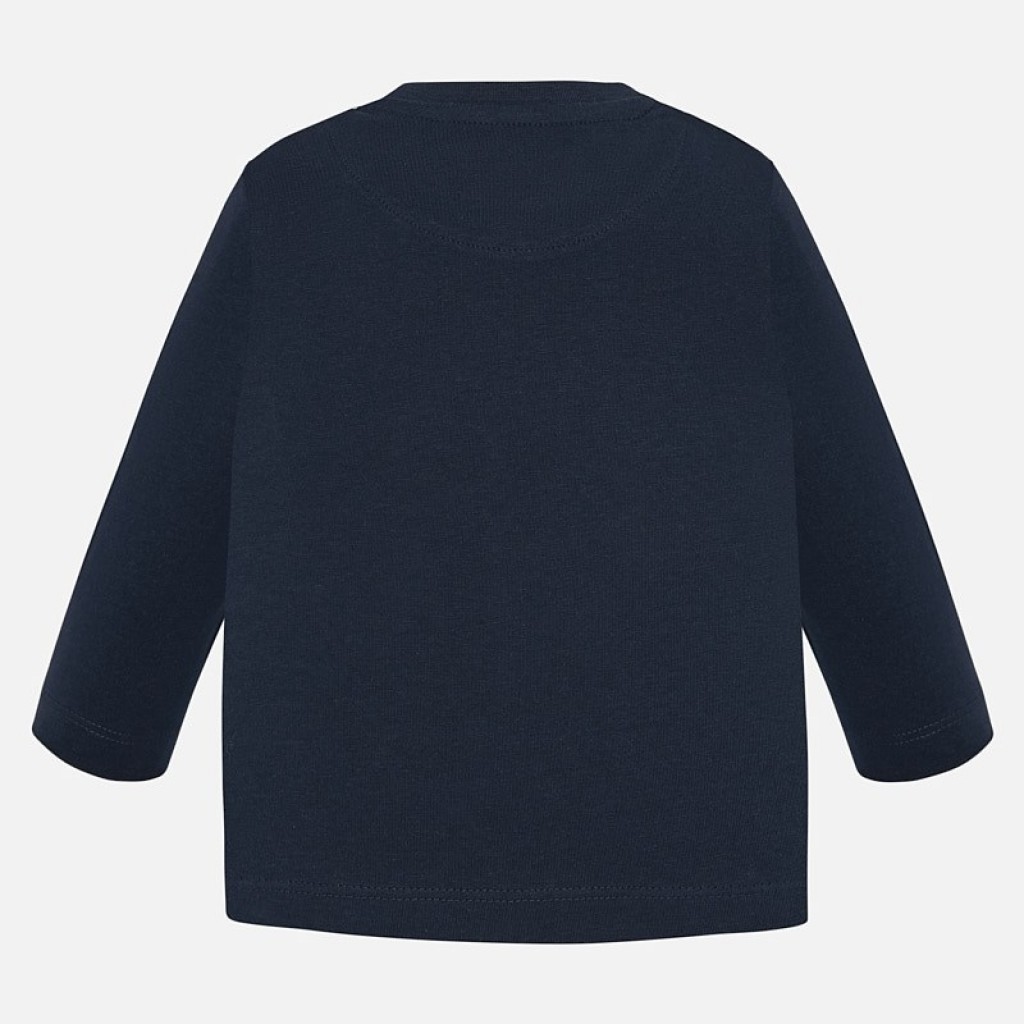Tričko s dlhým rukávom pre chlapca. Okrúhly výstrih. Zapínanie gombíky na ramene umožňuje ľahké nasadenie odevu. Vyrobené zo 100% bavlny. Dekoratívne prvky: dizajn na prednej strane.