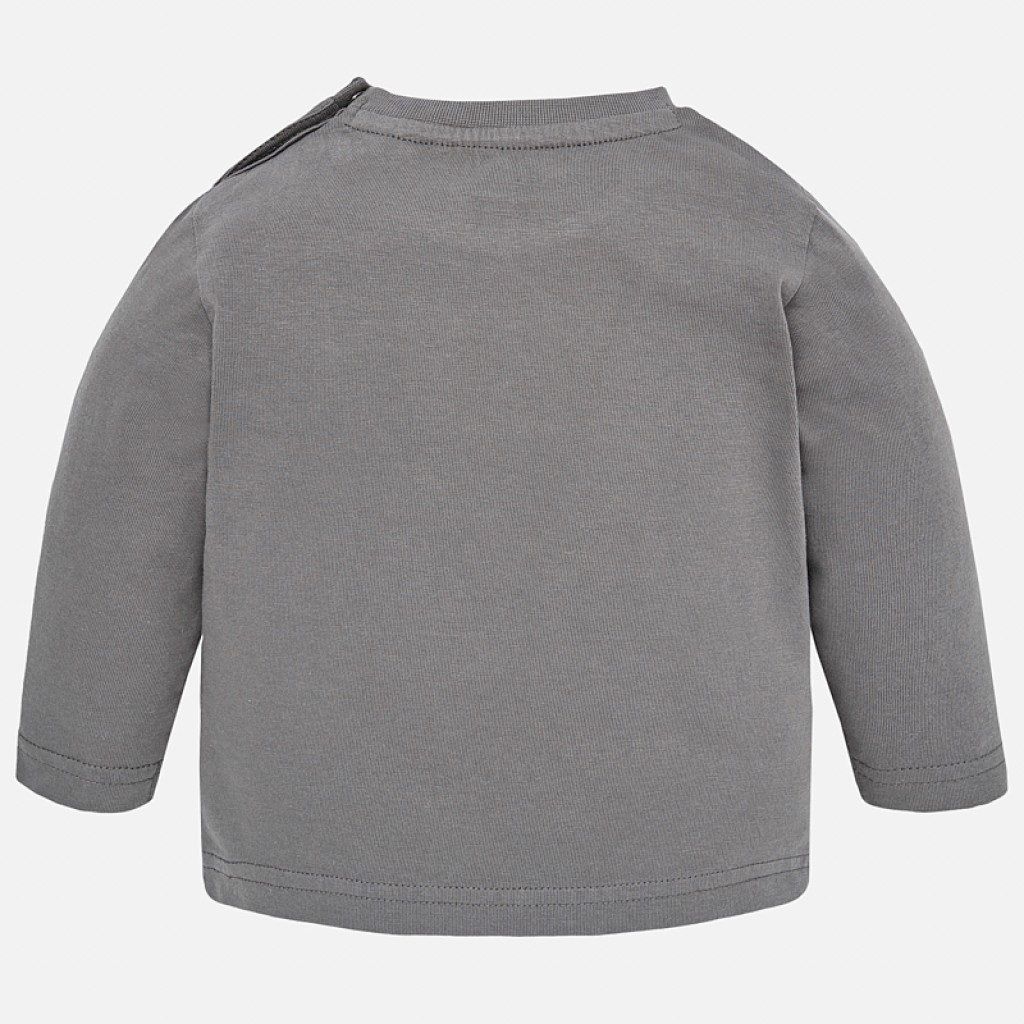 Long sleeved t-shirt for baby boy with a round neck collar in the same colour. There are snap-button fastenings on the shoulder, making it easy to dress your child. The t-shirt is made from soft, elasticated cotton fabric and has aviation-themed motif printing on the front of the item.2D191