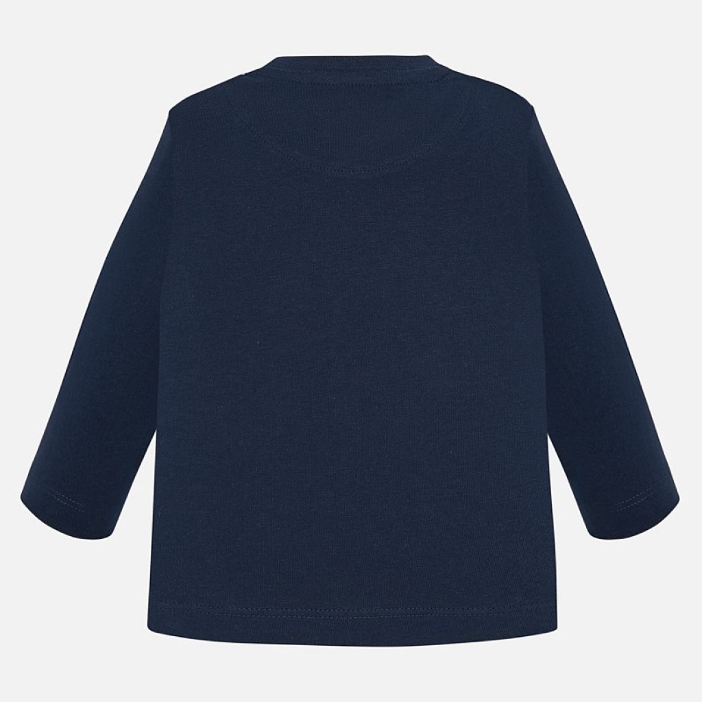 Tričko s dlhým rukávom pre chlapca. Okrúhly výstrih. Zapínanie gombíky na ramene umožňuje ľahké nasadenie odevu. Vyrobené zo 100% bavlny. Dekoratívne prvky: dizajn na prednej strane.