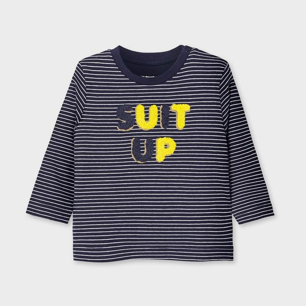Long sleeved striped t-shirt with letters for baby boy