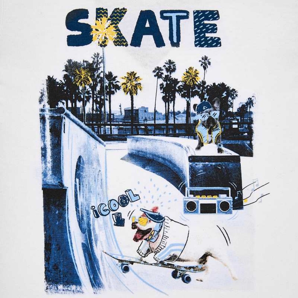 Okrúhly výstrih. Patenty na ramene umožňujú jednoduché oblečenie tričiek. Dekoratívne prvky: potlač vpredu.