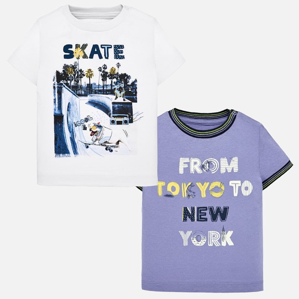 Set 2 tričiek skrátkym rukávom pre chlapcov. Vyrobené zo 100% bavlnenej tkaniny.