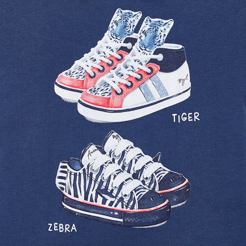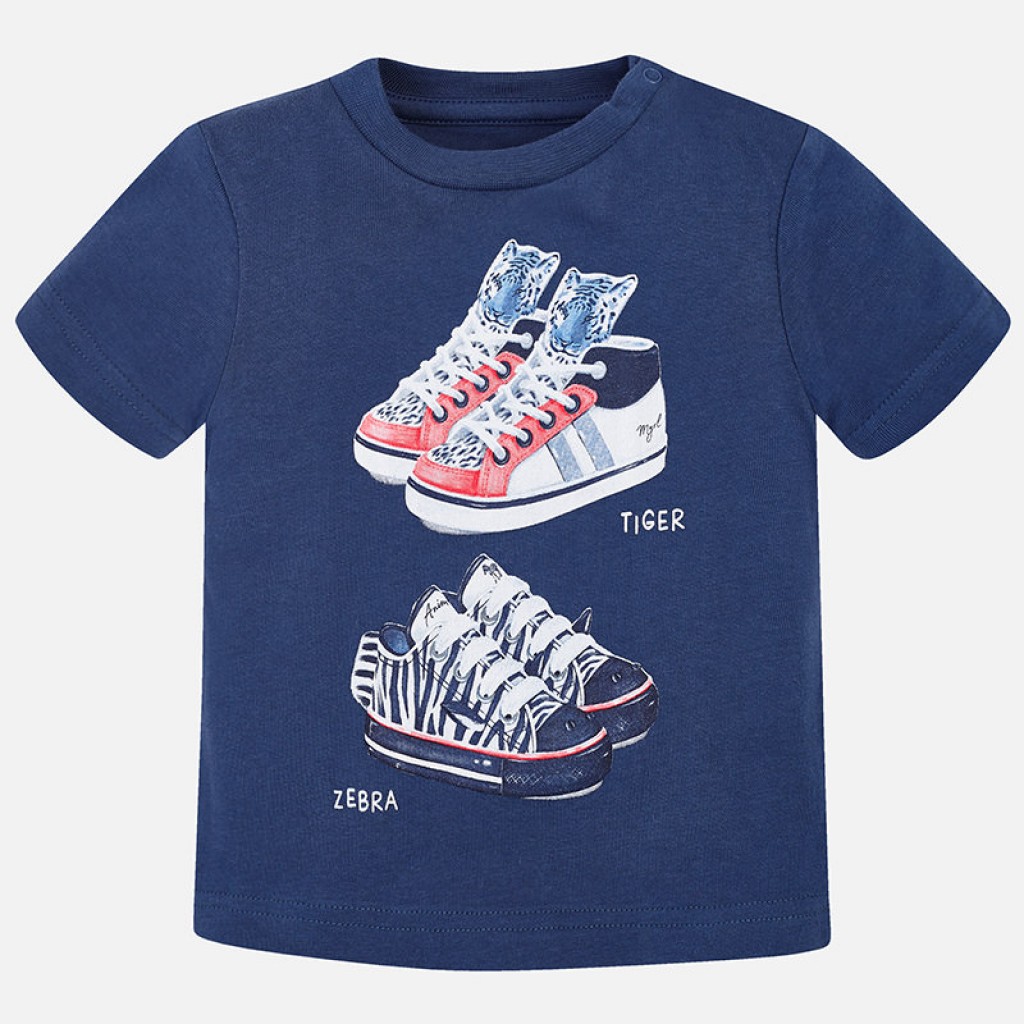 Short-sleeved summer t-shirt for boys, soft knit fabric with great comfort for summer days. Highlights a nice neck and double stitching on sleeves and bottom of the shirt. It includes a nice silkscreen design on the front of the shirt.