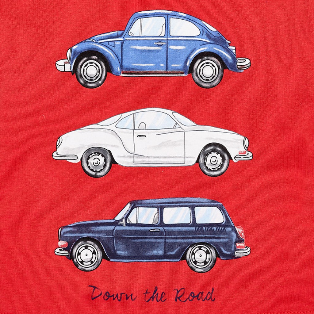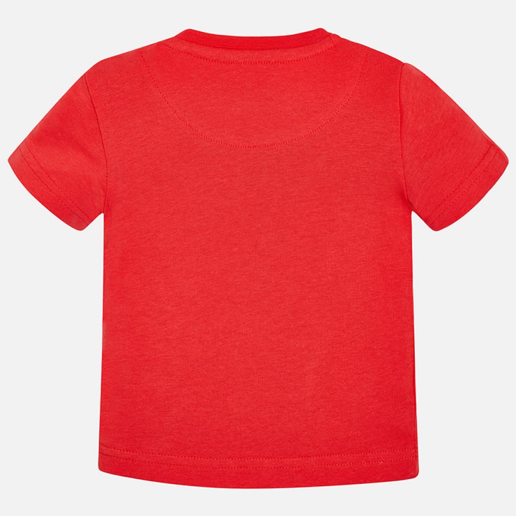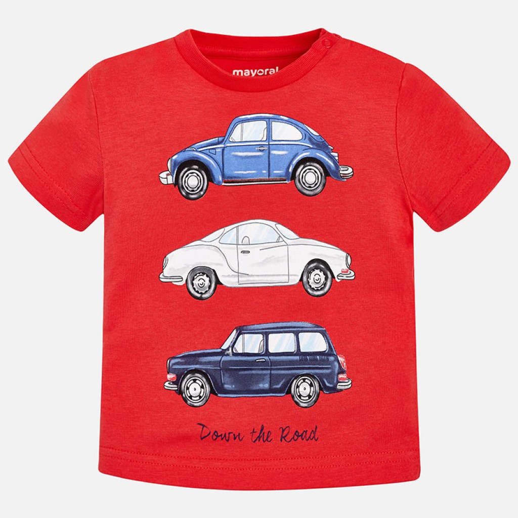Short sleeve summer boy shirt, soft and fresh fabric in plain knit. Simple piece of easy combination, highlights a fine neck of ribbed fabric and great comfort. It has a nice and original silkscreen design on the front of the shirt.
