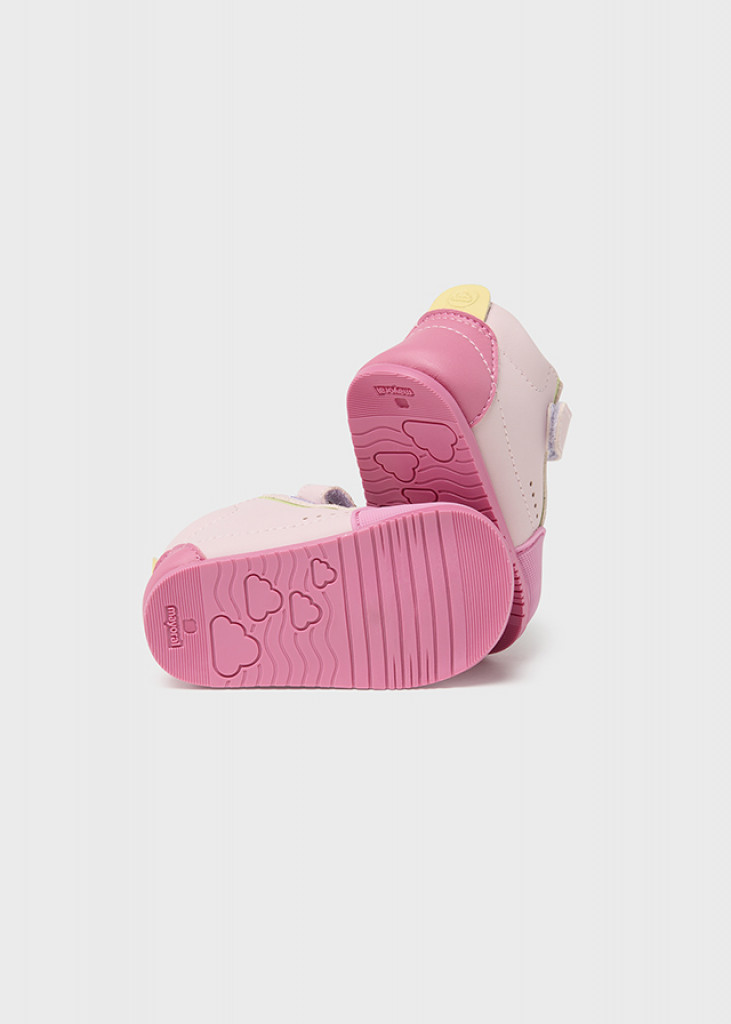 Moderné športové topánky pre dievčatá, ideálne na ležérne doplnenie každého outfitu. Protišmyková gumová podrážka na posilnenie priľnavosti pri chôdzi. Nastaviteľný pásik na suchý zips, ktorý zaručuje dokonalé prispôsobenie. Ozdobné elastické šnúrky. Táto inovatívna obuv s efektom barefoot (nulový pokles) sa zameriava na deti, ktoré práve začínajú chodiť. Dizajn neobsahuje žiadne kovové predmety, aby sa predišlo alergiám.