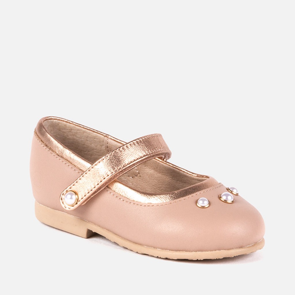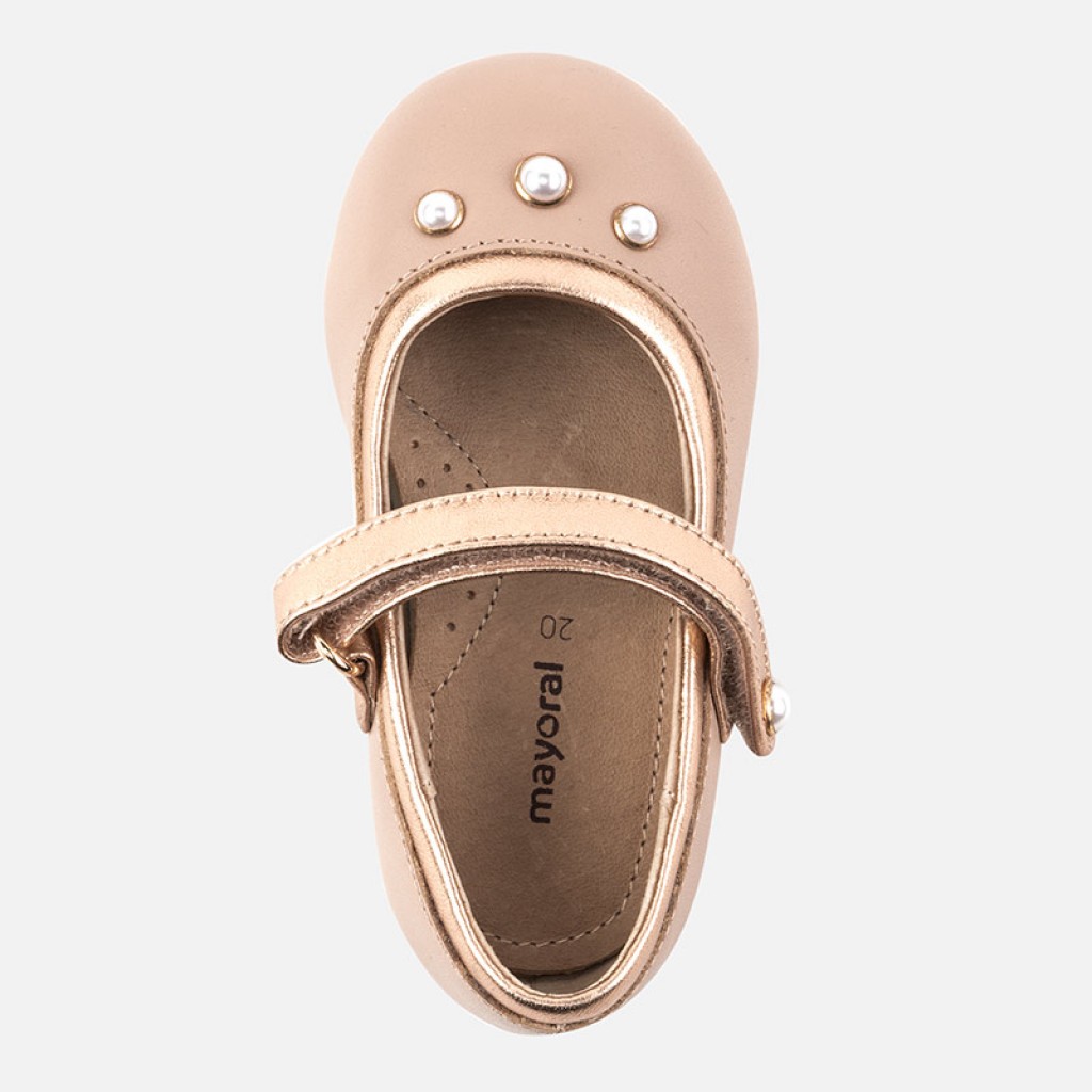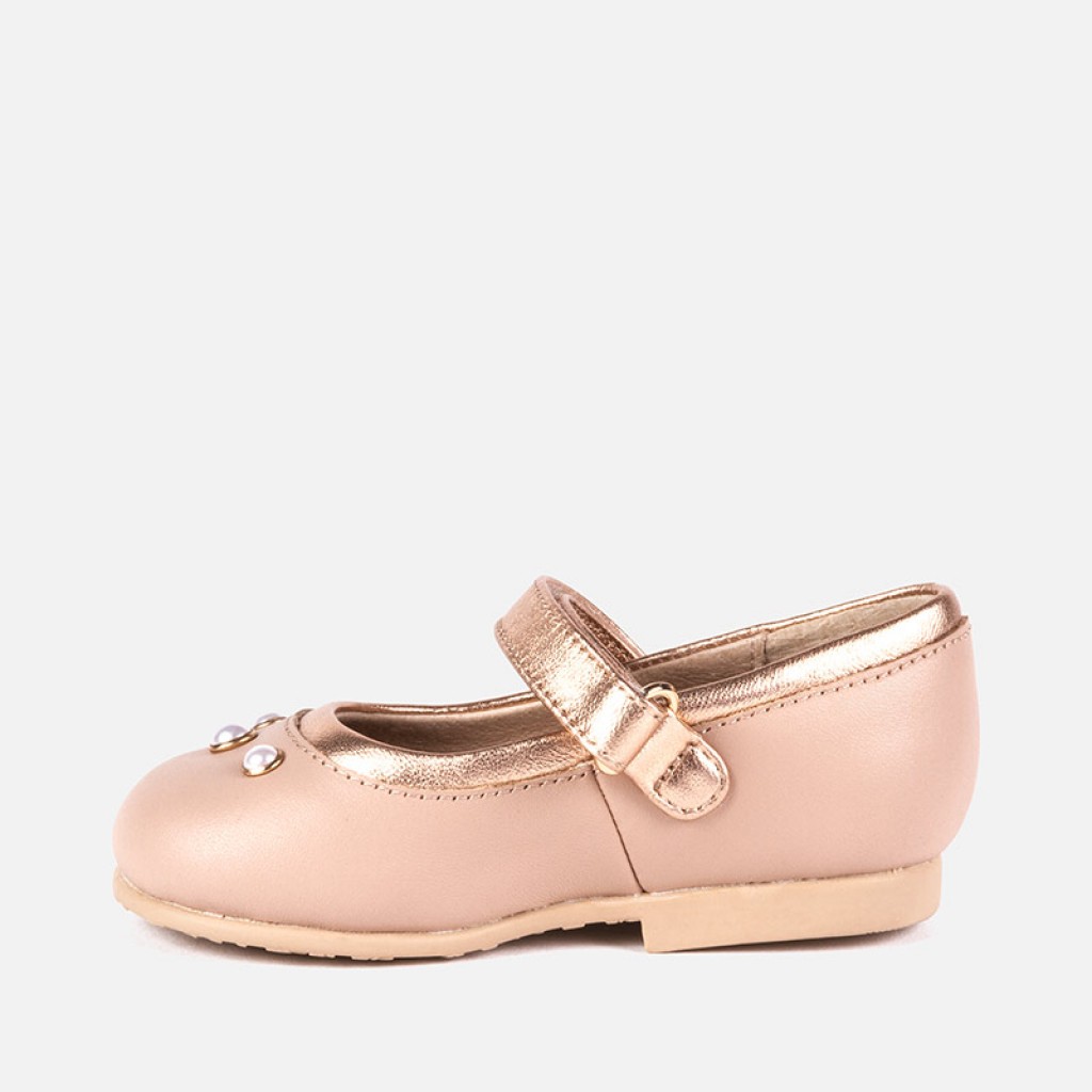 Mary Jane shoes, a classic and timeless style for their most elegant looks. Made with inner lining and leather insole. Leather outer coating. Non-slip rubber sole for a more secure step. There is an adjustable velcro band across the top to fasten which guarantees perfect support of the foot. Jewel elements (Pearls).