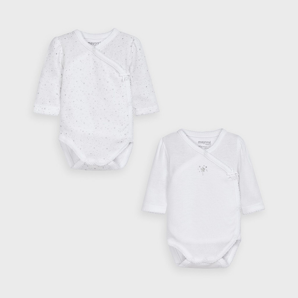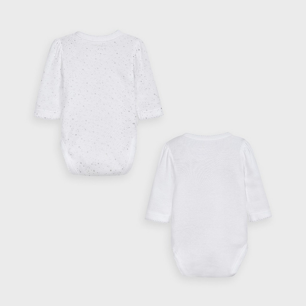 Sada dvoch bodusuitov pre novorodencov vo veku 0 až 18 mesiacov. Vyrobené zo 100% bavlny.