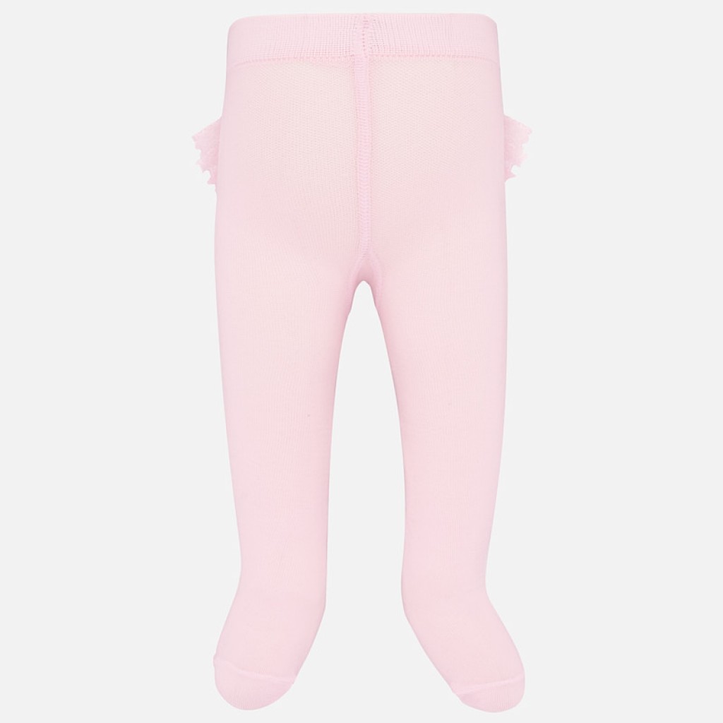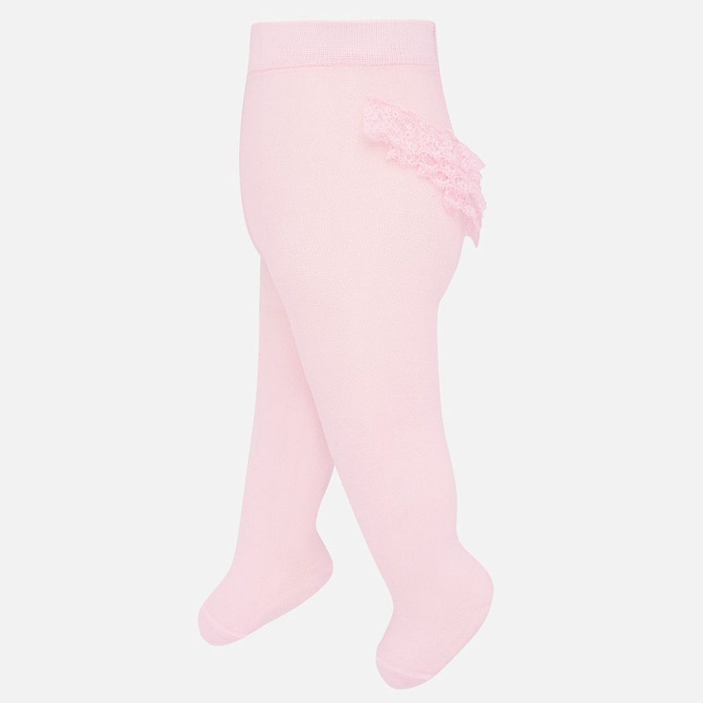 Pančuchy pre dievčatá s elastickým pásom pre lepšie uchytenie. Jedná sa o univerzálny doplnok, ktorý sa dá ľahko kombinovať s inými odevmi, aby sa doplnil celý vzhľad. Dekoratívne prvky: kvetinová nášivka, čipka, ozdobný volán. Obyčajný dizajn.