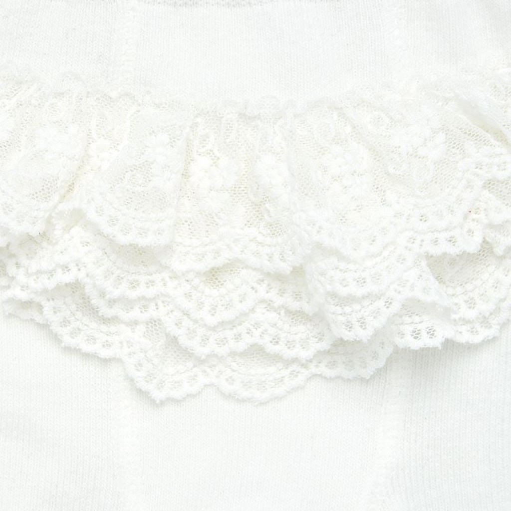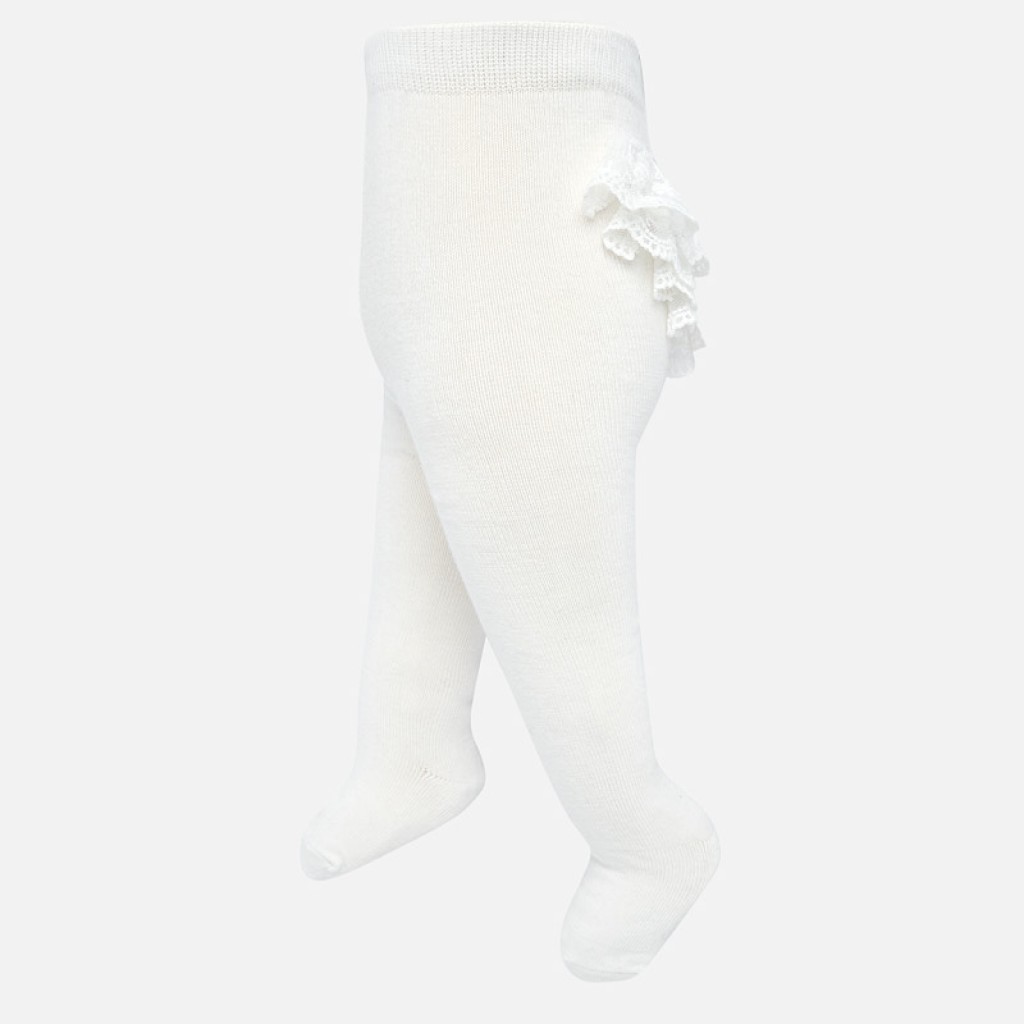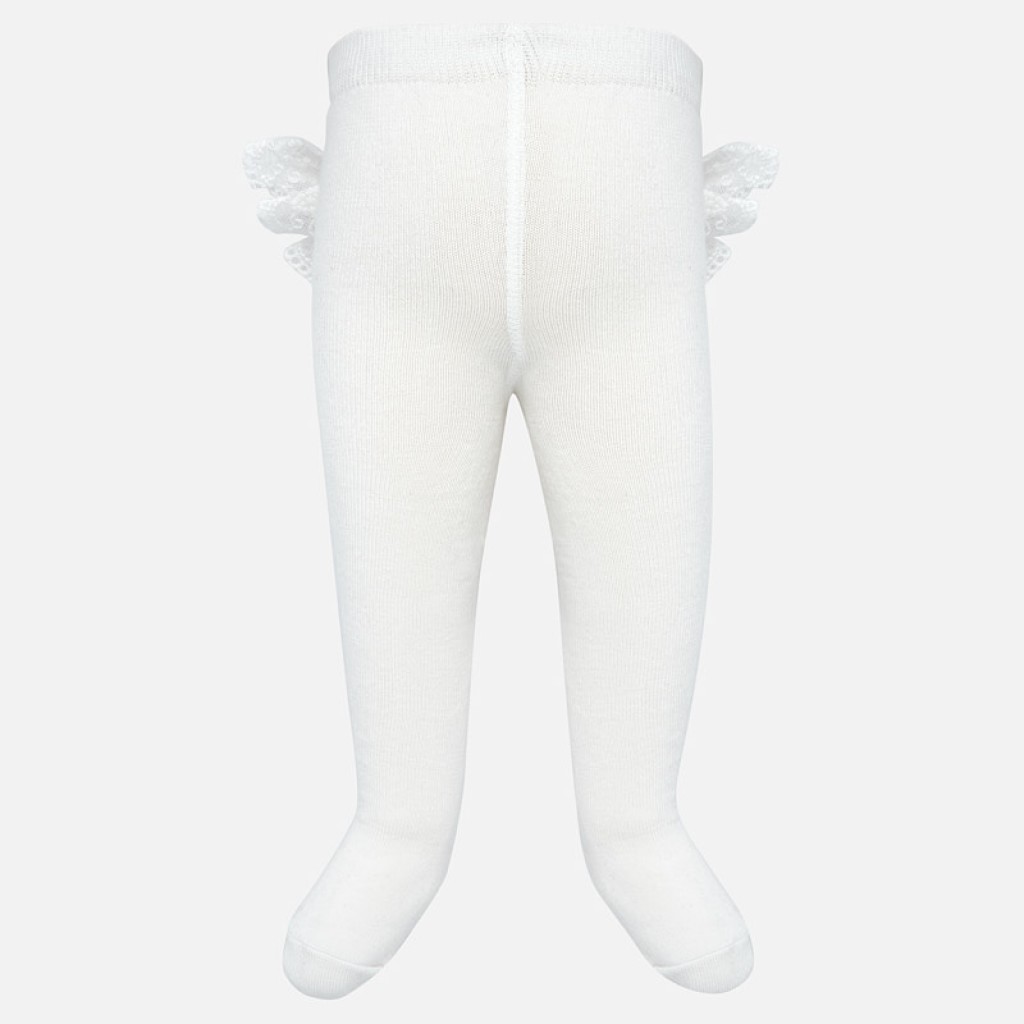 Pančucháče pre novorodencov s elastickým pásom, ktorý dobre zapadá do postavy. Tieto pančuchy sú základným doplnkom, ktorý poskytuje vysoký komfort a univerzálnosť. Elastický pás pre lepšie uchytenie. Dekoratívne prvky: ozdobné volány.