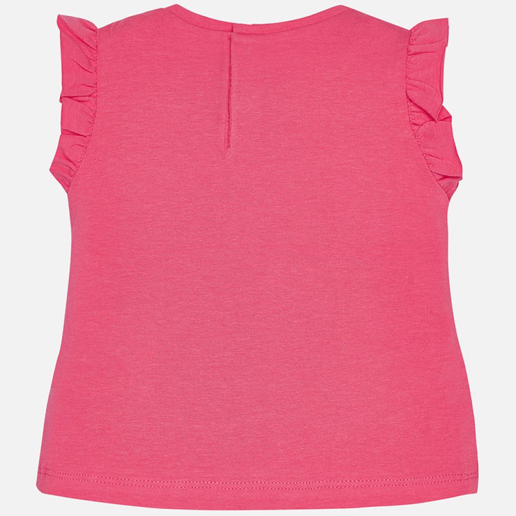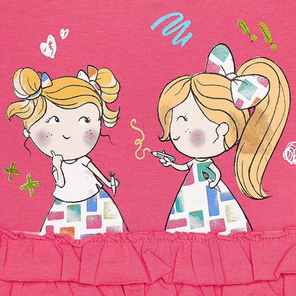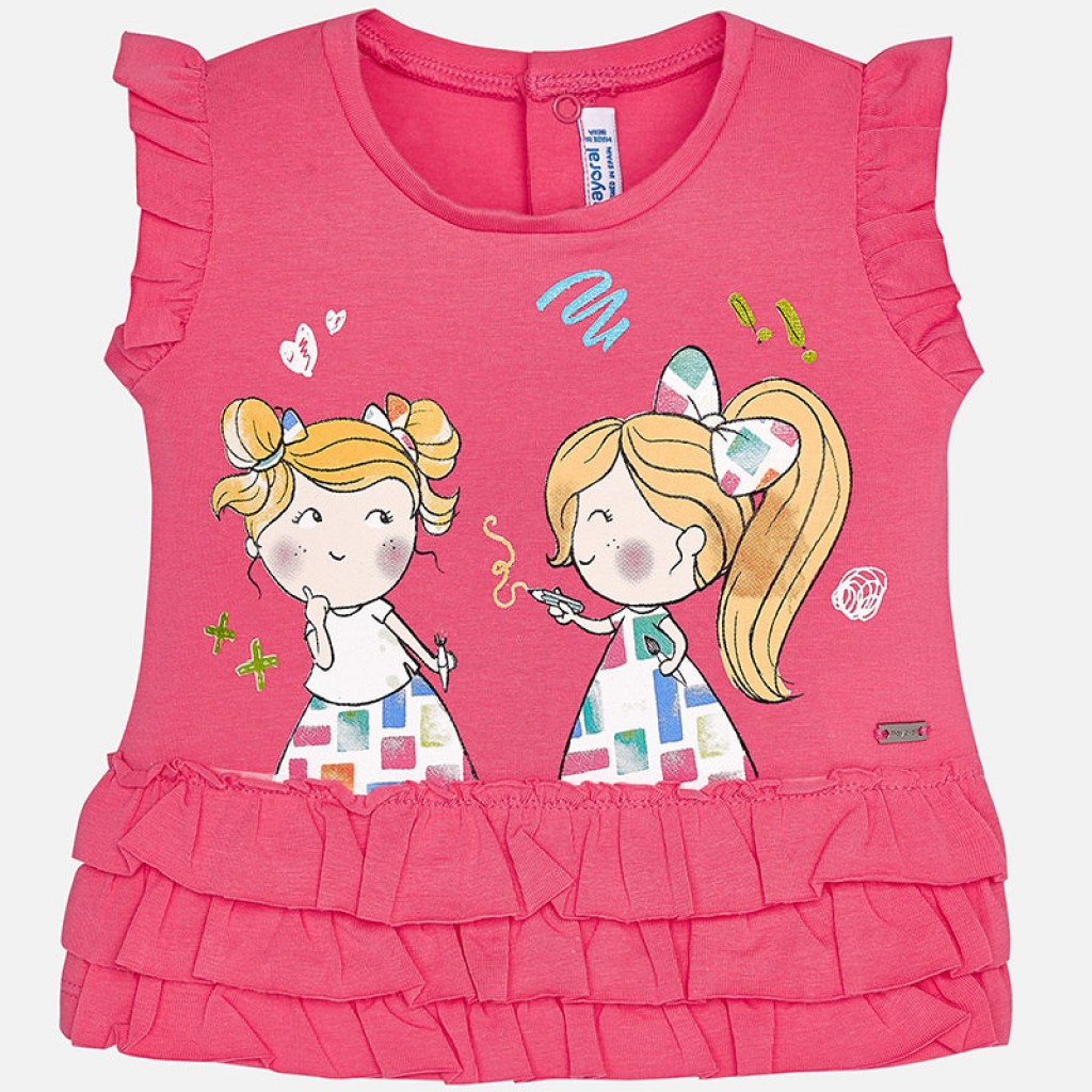 Fun t-shirt for girls with short sleeves in knitted lycra fabric, a cool garment for summer. It is a model that stands out for its original design ruffles. This garment is finished with a nice and silky screen print.